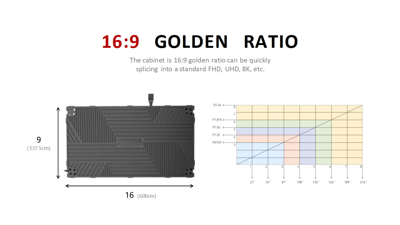 Pixel pitch | P0.78 COB | P0.9 COB | P1.25 COB | P1.56 COB | P1.87 COB | ||
